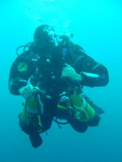 Le brevet de plongeur Trimix élémentaire vous permettra de plonger en autonomie jusqu'à 70 mètres dans le cadre de vos prérogatives sans changer le matériel que vous utilisez pour vos plongées profondes à l'air. Votre profondeur équivalente narcotique sera de l'ordre de 30 mètres et vous serez réellement « clair »... Vous qui pensiez que vous n'étiez jamais narcosé !!! Un bi-bouteille sur le dos, un mélange travel d'un côté et une déco Oxygène de l'autre, le brevet de plongeur Trimix ne s'envisage qu'avec une sérieuse expérience de la plongée profonde et une formation s'étalant sur plusieurs stages avec une pré paration mentale et physique appropriée. |